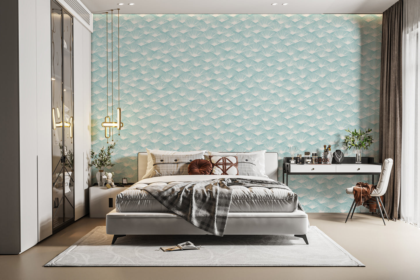 Elegant Abstract Aqua Fronds wallpaper for modern spaces.
