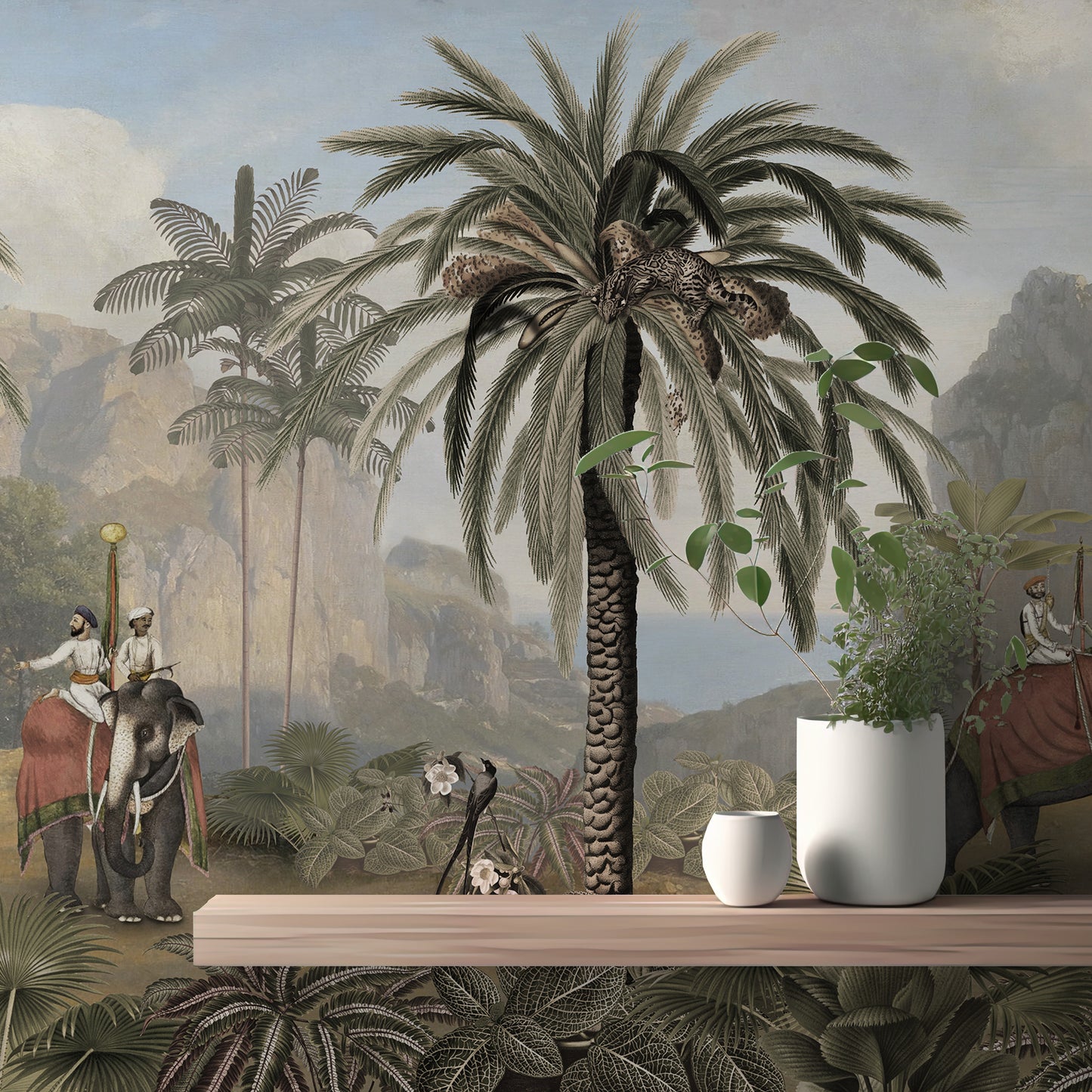 Elephant ride Adventure in Vintage forest peel and stick wallpaper
