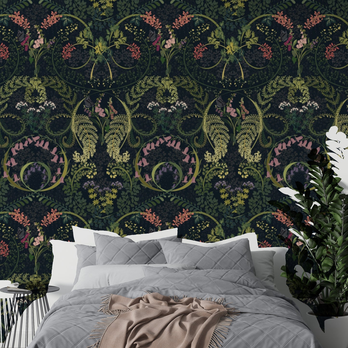 Transform spaces with Fauna Silhouette Garden wallpaper design