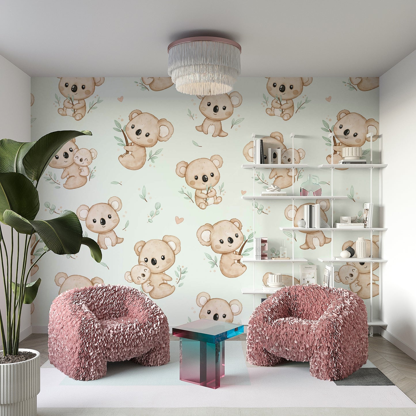 Bring a touch of charm and joy into your home with this delightful wallpaper design featuring adorable koalas. The mint background adds a refreshing and calming vibe, perfect for any room. Ideal for nurseries, bedrooms, or a playful living space, these cuddly koalas bring warmth and character to your walls. Whether you’re creating a fun child’s room or adding a whimsical touch to your decor, this design is sure to inspire smiles and enliven your space with its cute, nature-inspired theme.