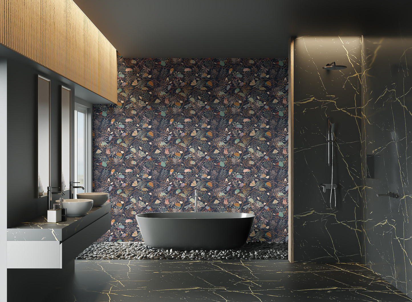 Drift into the depths of a mystical realm with the mystic garden canopy wallpaper, a seamless blend of nature's serene beauty and imaginative artistry. Adorn your walls with a tapestry of delicate foliage, whimsical butterflies, and elusive forest sprites that dance across a twilight backdrop. This wallpaper invites a whisper of enchantment into every room, creating a narrative that unfolds with every glance. Perfect for those seeking to infuse their home with a storybook charm, it's a piece that speaks of hidden groves and fairy tale dreams, turning the mundane into something truly magical.