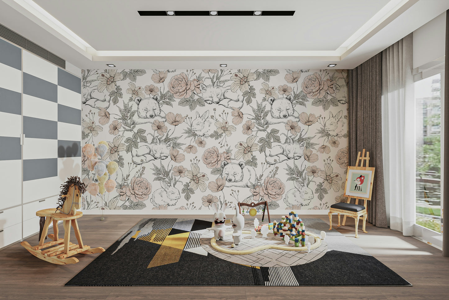 Drift into a dreamy forest scene with our Sleeping Woodland wallpaper a charming design that captures the magic of bedtime in the woods. Delicately illustrated with sleeping koalas, foxes, bunnies, and gentle blooms in soft pastel tones, this wallpaper brings a calming, storybook quality to any child’s space. Perfect for nurseries, reading nooks, or playrooms, its hand-drawn style creates a cozy and imaginative atmosphere. Crafted with love and easy to apply, it’s a sweet escape into nature’s quiet moments. Let your little one rest surrounded by the soft whispers of the forest and the comfort of sleepy woodland friends.