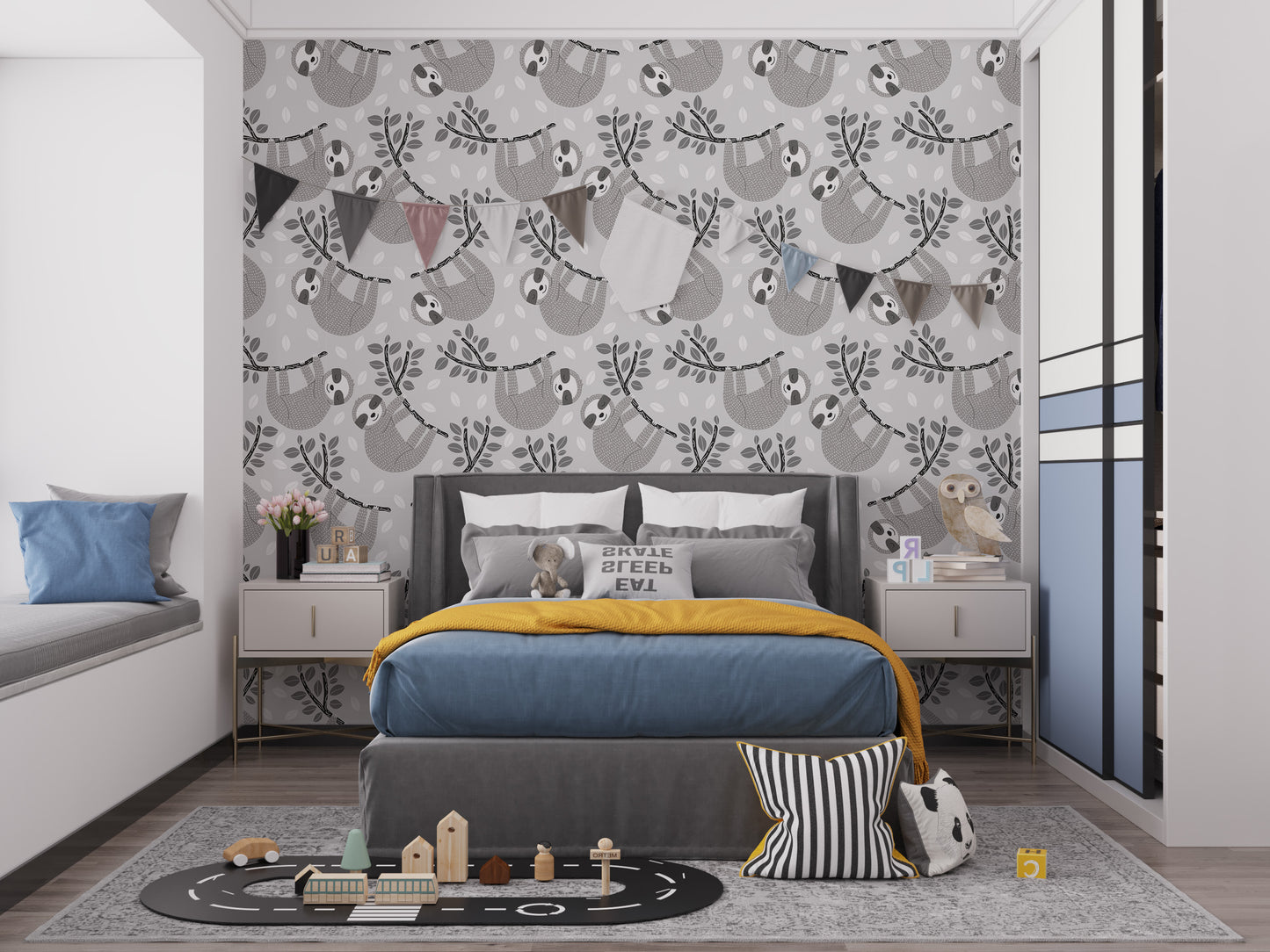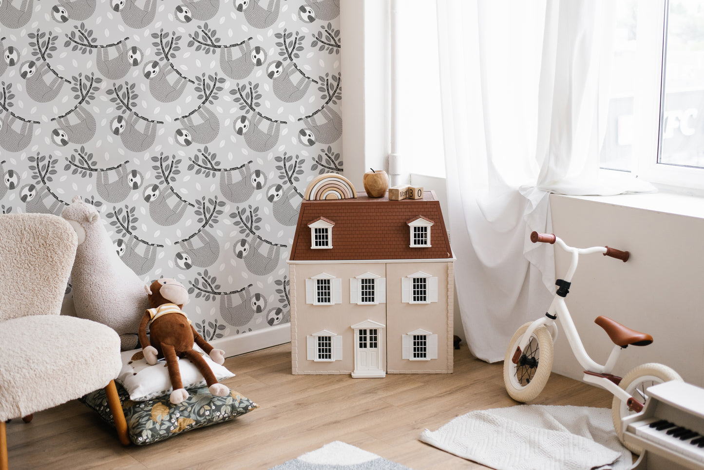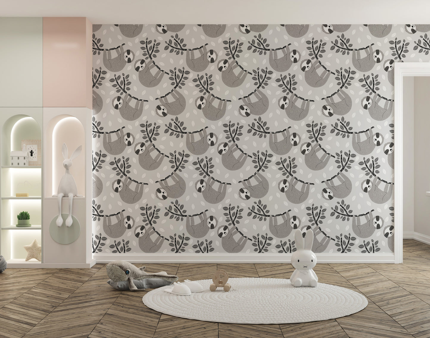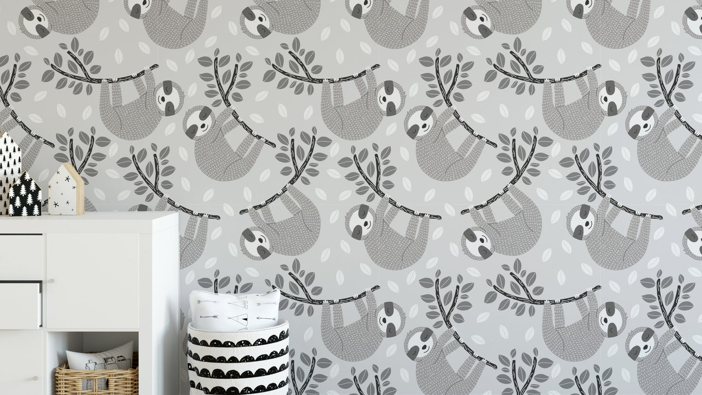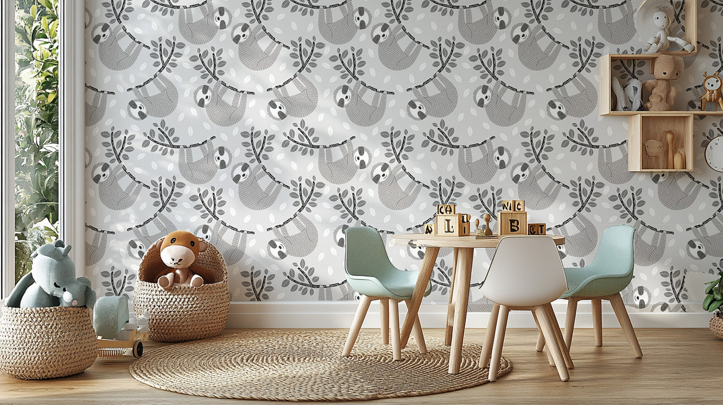Embrace the charm of slow living with our Sleepy Sloths on Leafy Branches Wallpaper. This adorable design features lazy sloths lounging on leafy branches, set against a soft, neutral background. The playful imagery and gentle hues create a relaxed and cheerful atmosphere, perfect for nurseries, children's rooms, or any space in need of a dose of cuteness and calm. Whether you're a fan of these lovable creatures or simply looking for a wallpaper that brings smiles and tranquility, this adorable relaxation leaves wallpaper design is a delightful addition to your home, encouraging everyone to take a moment and hang loose.