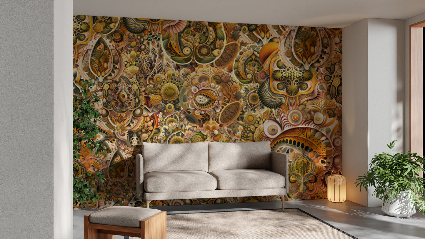 Transform your walls with yellow-brown Haeckel abstract mural wallpaper.