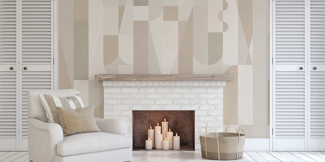 Contemporary abstraction wall mural - A whimsical parade for neutral escape