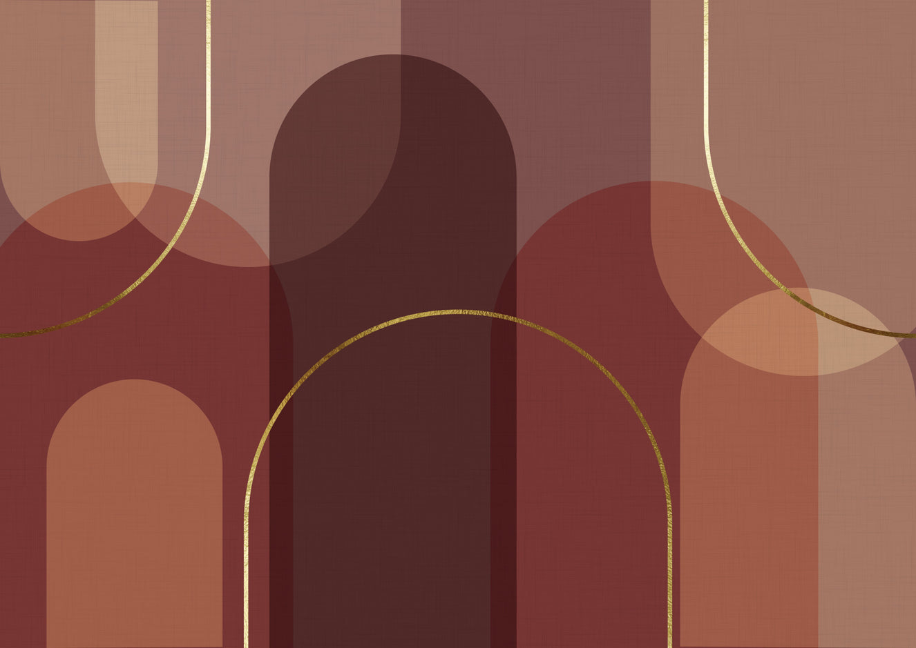 Burnt orange, deep red, rich brown, and gold accents come together beautifully. The abstract hills feel bold yet peaceful. Perfect for a bedroom accent wall. The effect is calming but never boring.