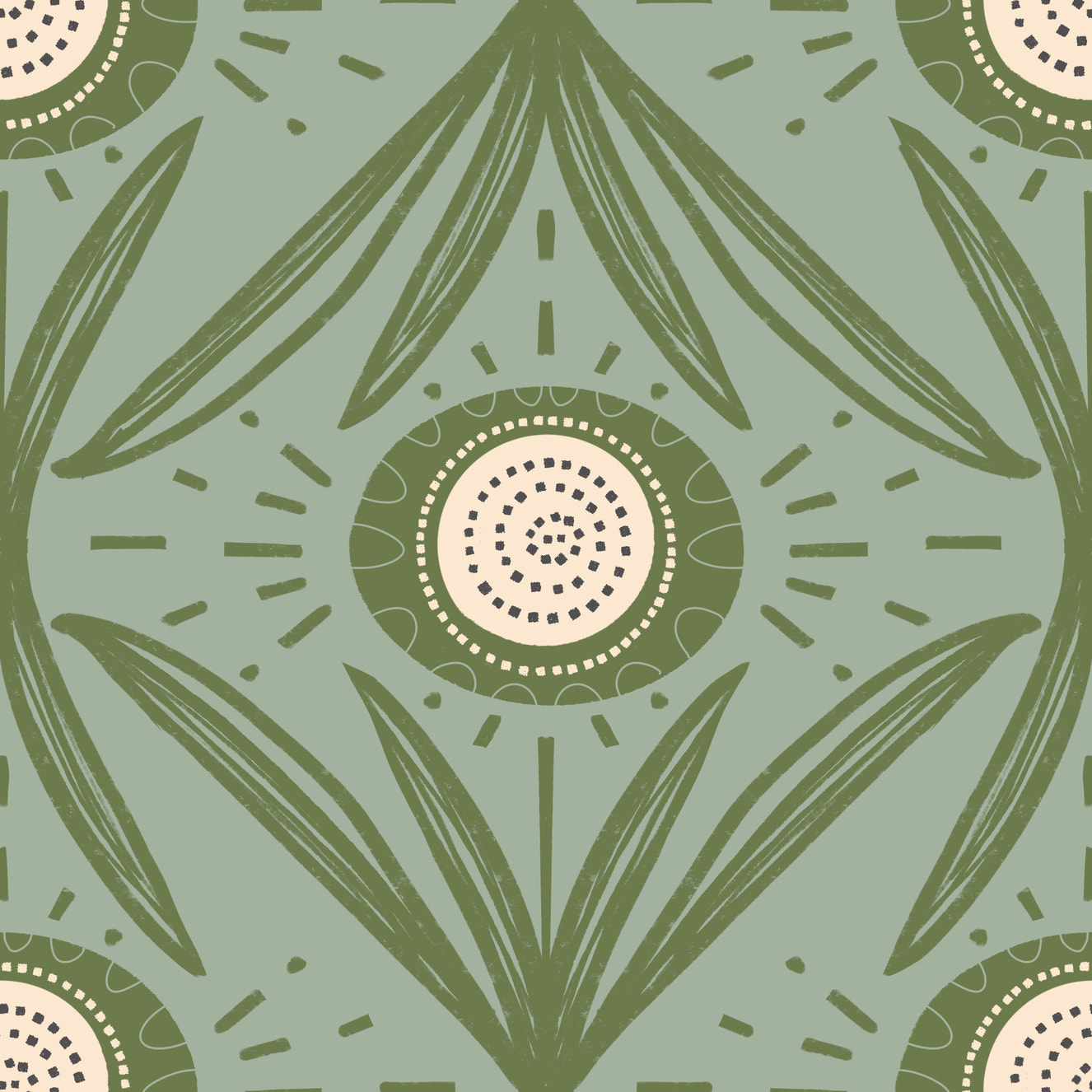 Bloom Light Sage Olive Scandinavian Mid Mod Floral