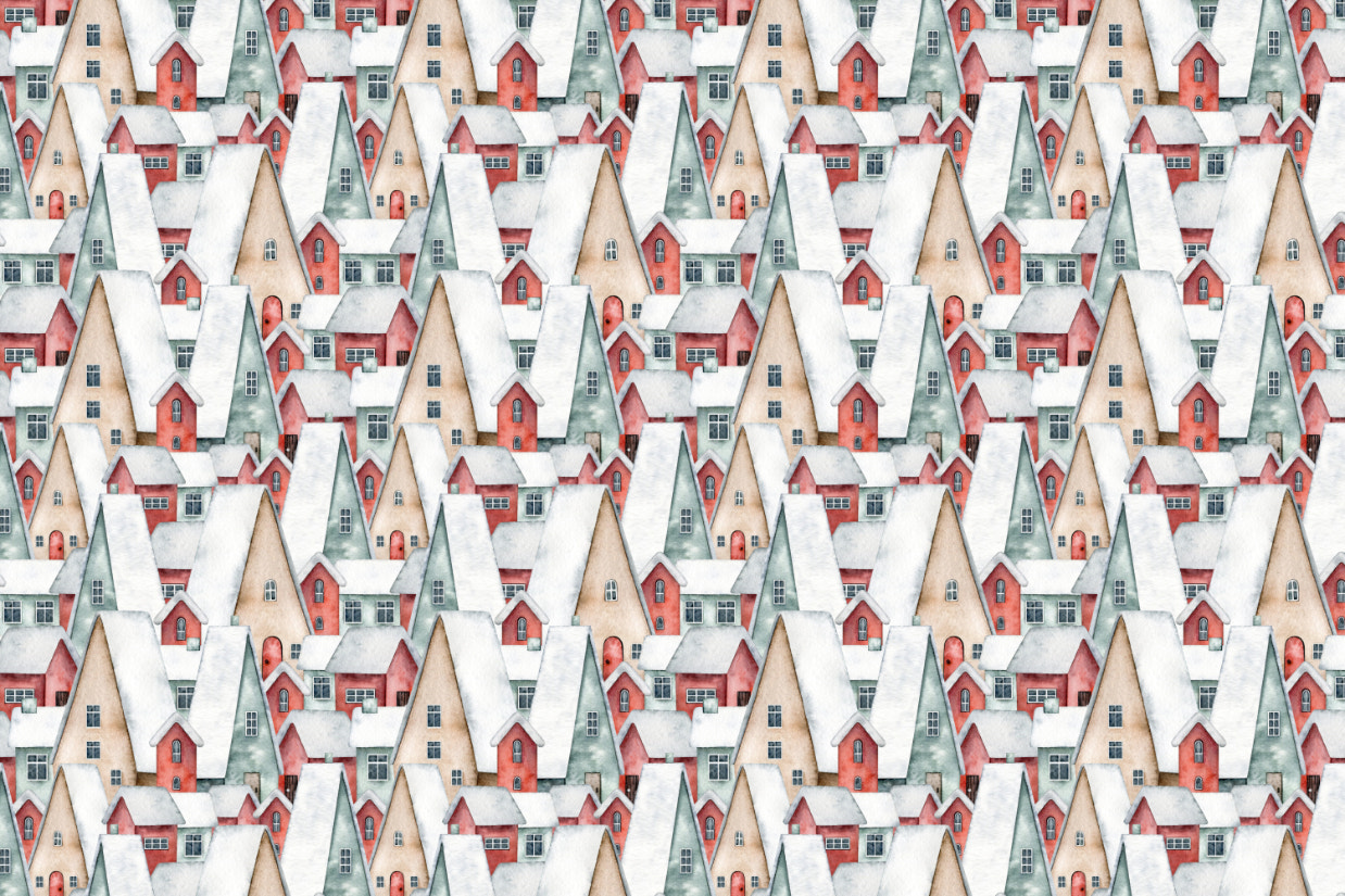 Watercolor Snowy Village