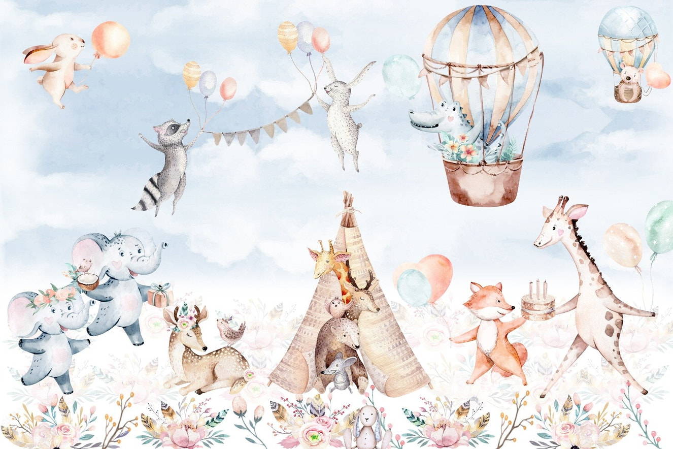 Baby Elephant Sky Adventure Mural