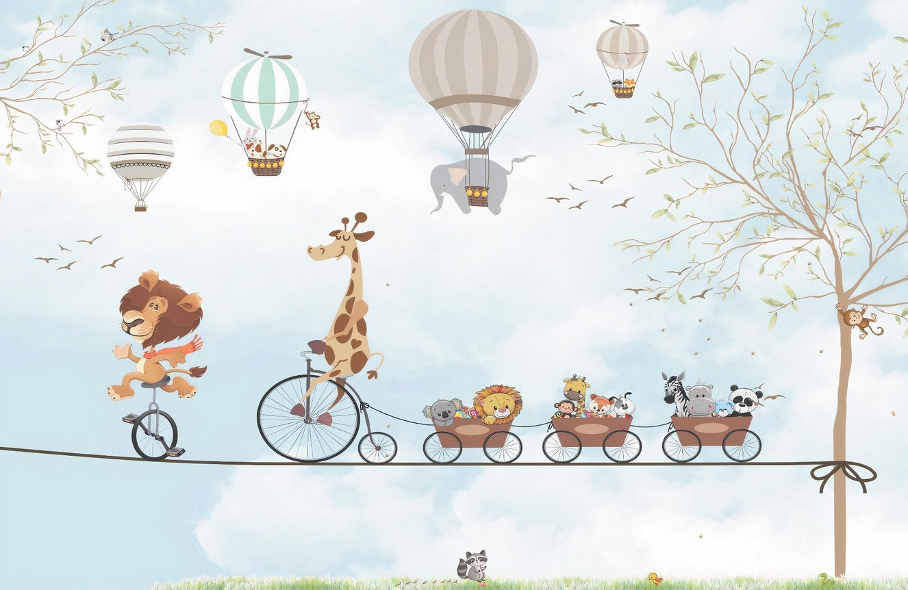 Cartoon Animals in the sky wallpaper mural