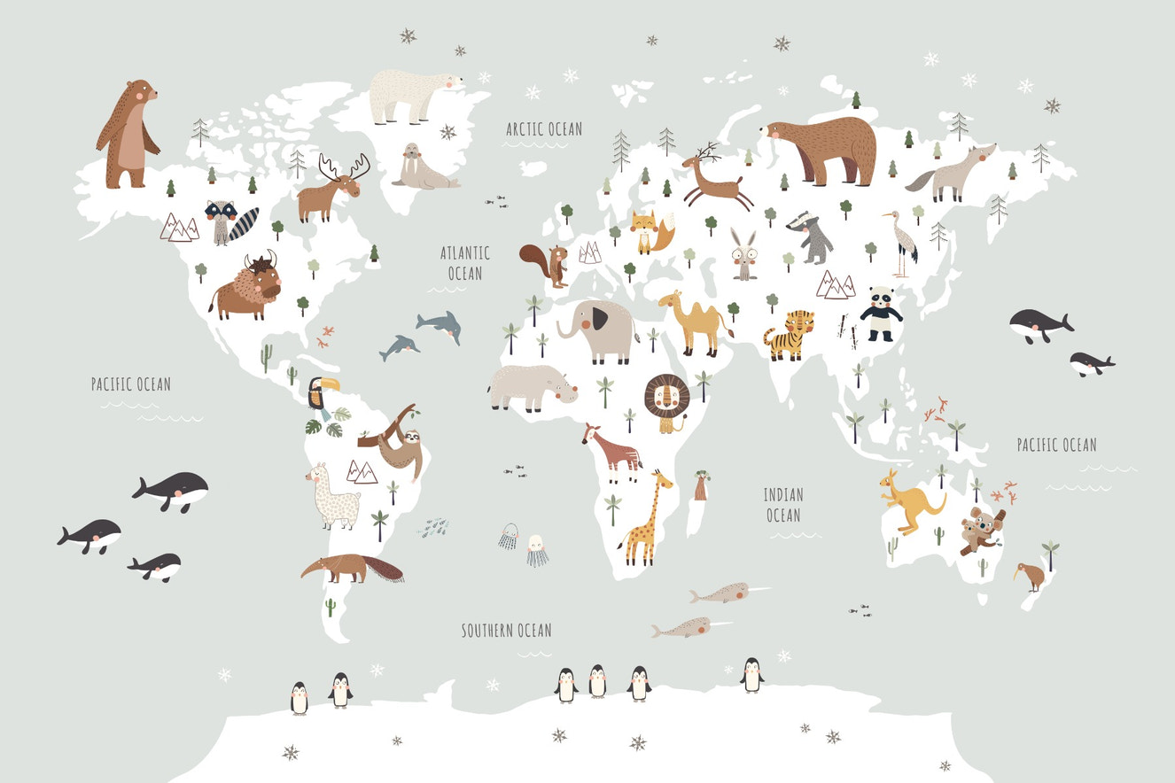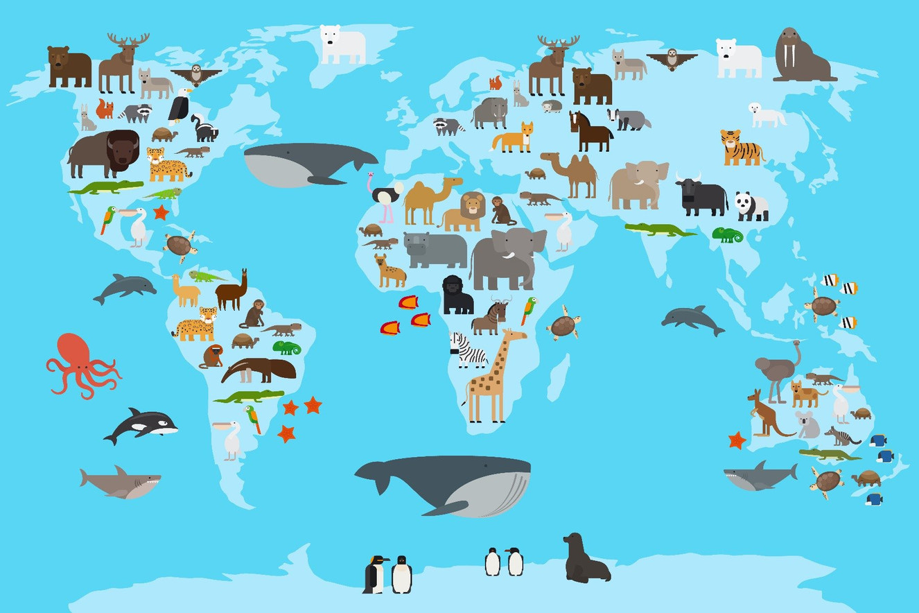 An educational world map wallpaper introduces the young minds to continents, countries, oceans life, and their wildlife, instilling an early interest in geography and world culture.
