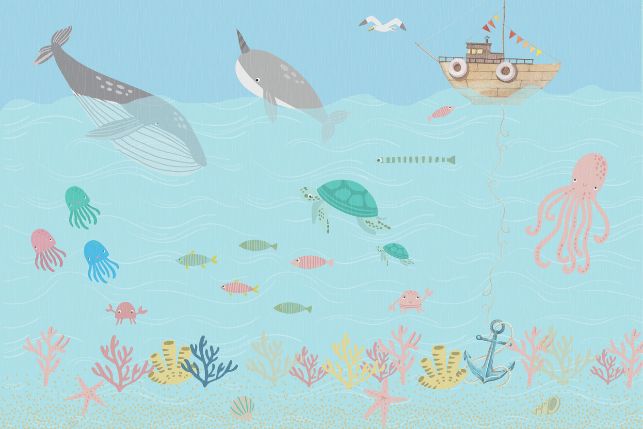 Our collection goes beyond the shore to include detailed deep-sea themes. You can find everything from colorful coral reefs and majestic whales to enchanting mermaid designs in our marine wallpaper selection.