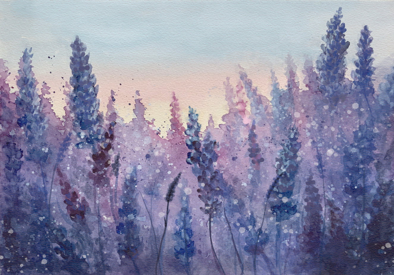 Watercolor paintings give a modern and artistic look to the lavender walls. The mixing of different colors reminds us of a canvas that has been painted by hand and creates a kind of visual interest that is unique and that solid colors have often had difficulties in giving.