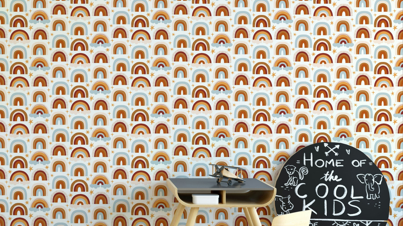 Rainbow wallpaper is a modern way to produce a larger-than-life impact on the room. This type of rainbow wall covering is an excellent choice for vibrant rainbow wall decor. The seven-spectrum patterns can hold intricate artistry like watercolor brushstrokes or dotted prints, displaying a multidimensional art form of rainbow style, often seen in a large-scale rainbow wall mural. Our products, like nursery wallpaper, comprehend similar rainbow designs that resonate with kids and draw childlike innocence when considering the premium kids wallpaper collection.