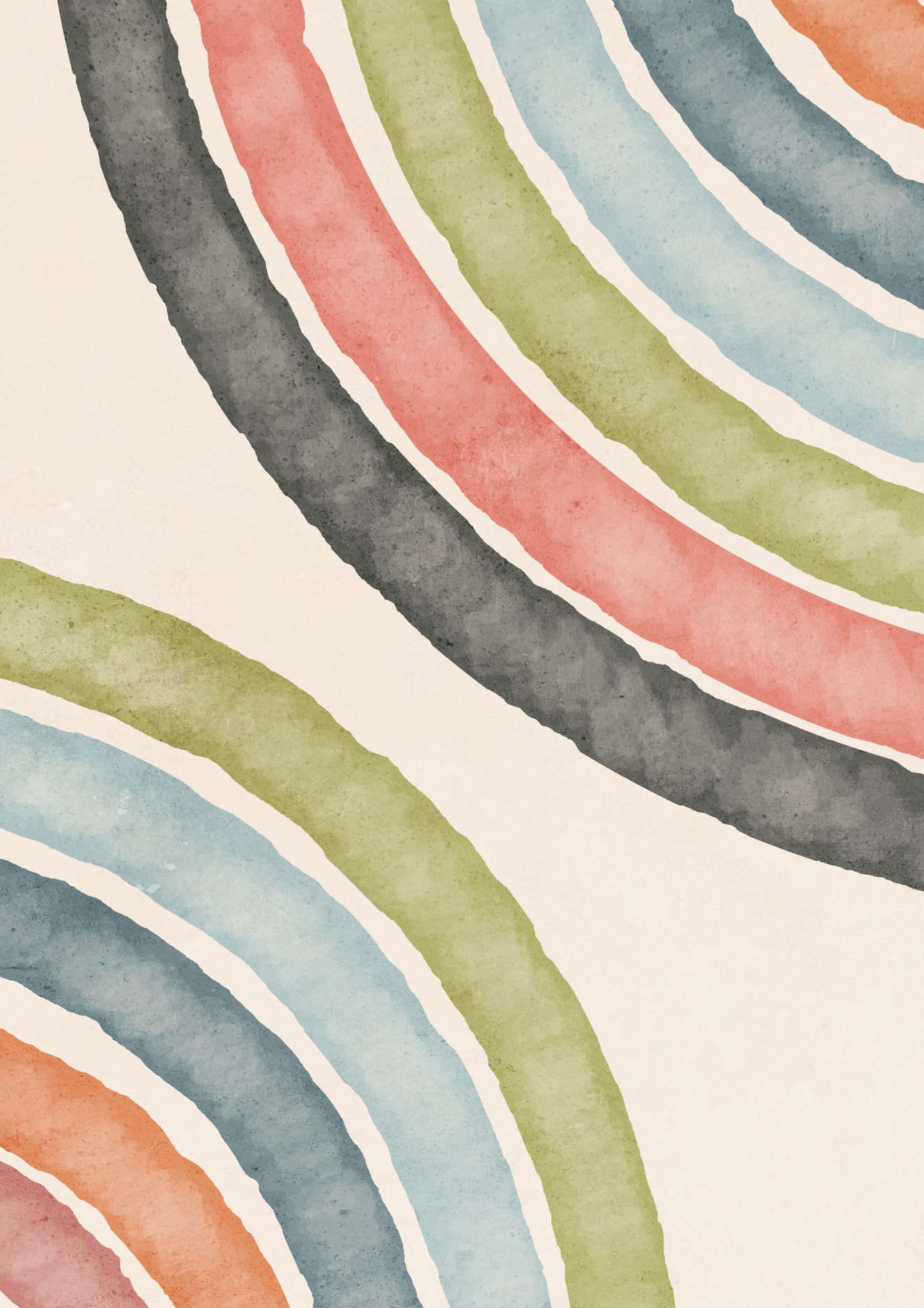 Our multicolored wallpaper collection has the full range from barely perceptible pastels and colors flowing into each other to wild, geometric patterns with sharp contrasting colors. You can choose anything from simple arcs to the complete abstract rainbow of colors which will flawlessly blend with your interior style.