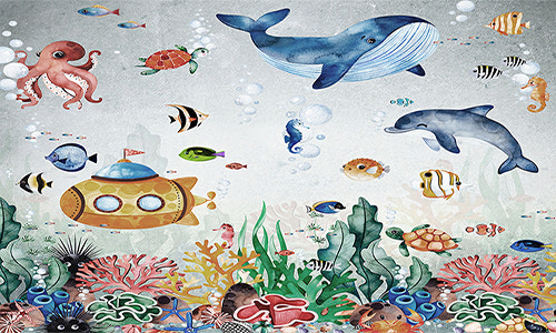 Our murals are offered on various high-quality materials, including a premium Made-to-Order whale wall surface option. We also have Self-Adhesive ocean creature wall paper for simple peel-and-stick application.