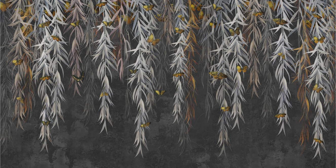 White Palm Leaves Concrete Texture Mural