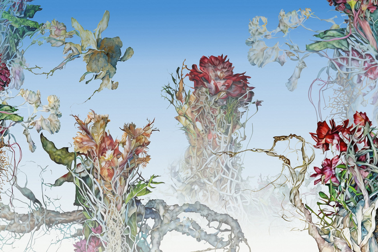 Lyserøde roser blomster vandfarve tapet murmalerier