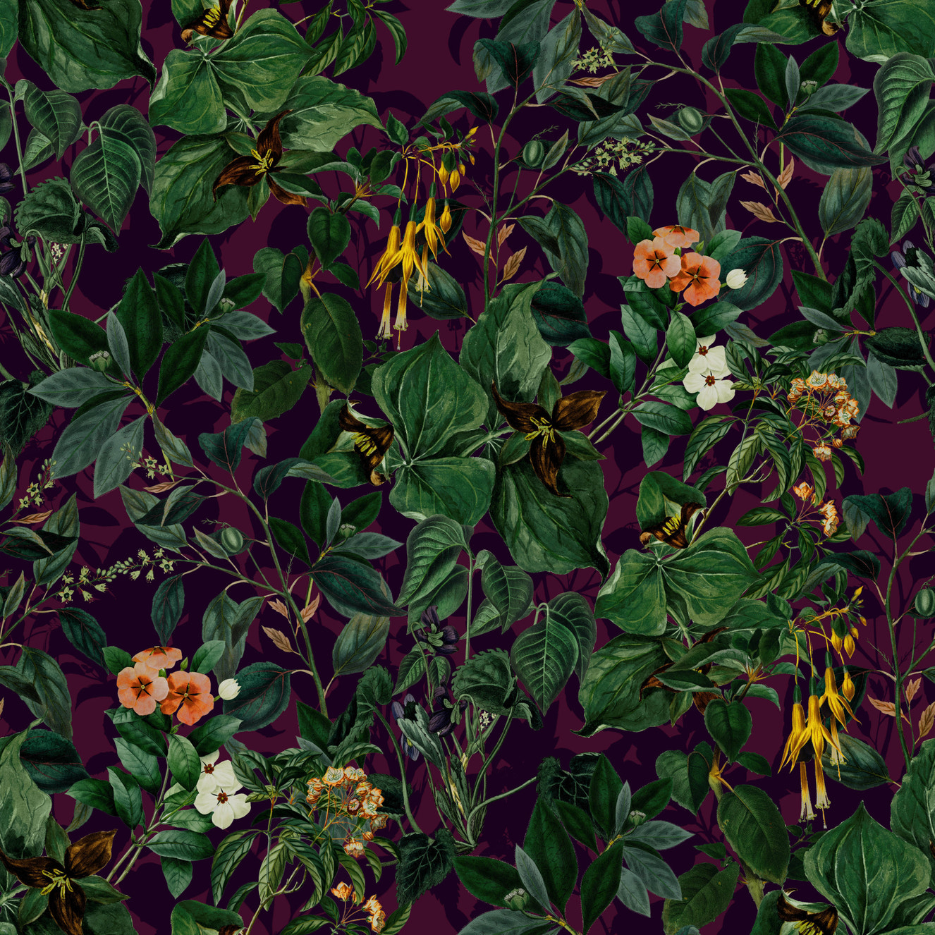 Boho Jewel Tone Botanical Plum Leaves Mustard