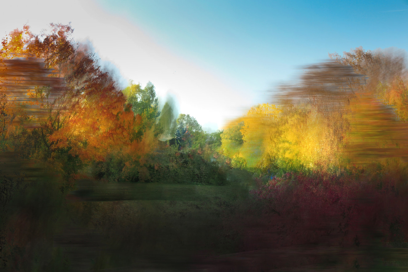 Autumn Serenity sløret landskab kunstprint vægmaleri
