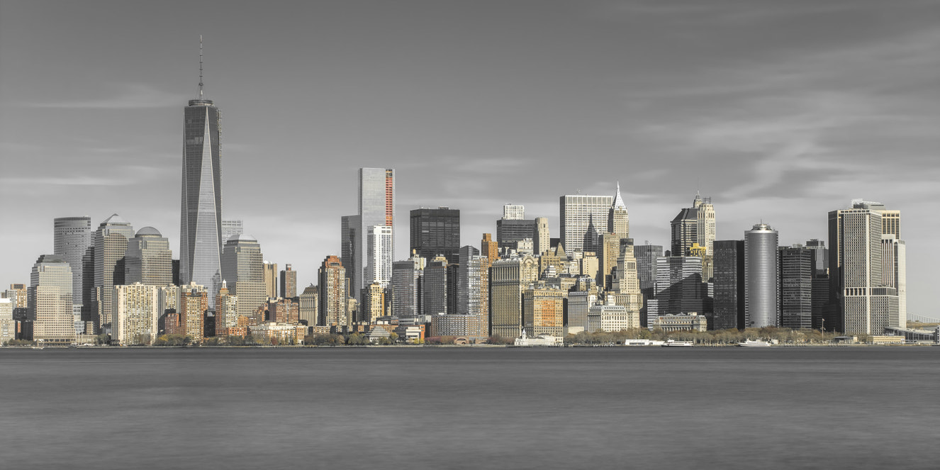 Vægmaleri med skyline af New York City