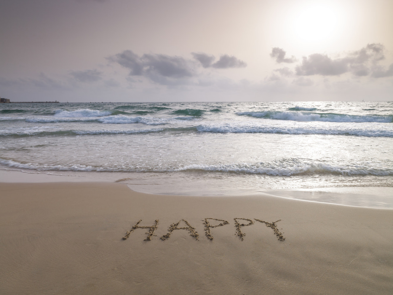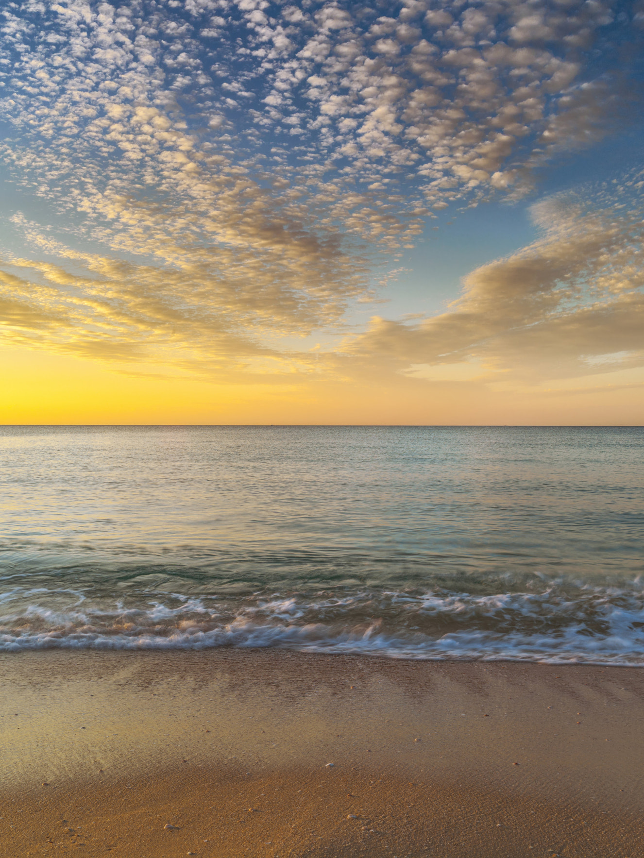 Vægmaleri med solopgang på den gyldne strand