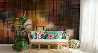 Invite creative energy into your home with this captivating abstract wallpaper. Vertical lines and vibrant colors create a stylish modern scene. Warm hues of orange, yellow, and red play beautifully against the darker tones. This design is perfect for spaces needing a unique touch. Use this wallpaper for walls in a living room, dining area, or hallway to inject personality. The distinctive pattern will draw the eye and easily complements contemporary interiors.