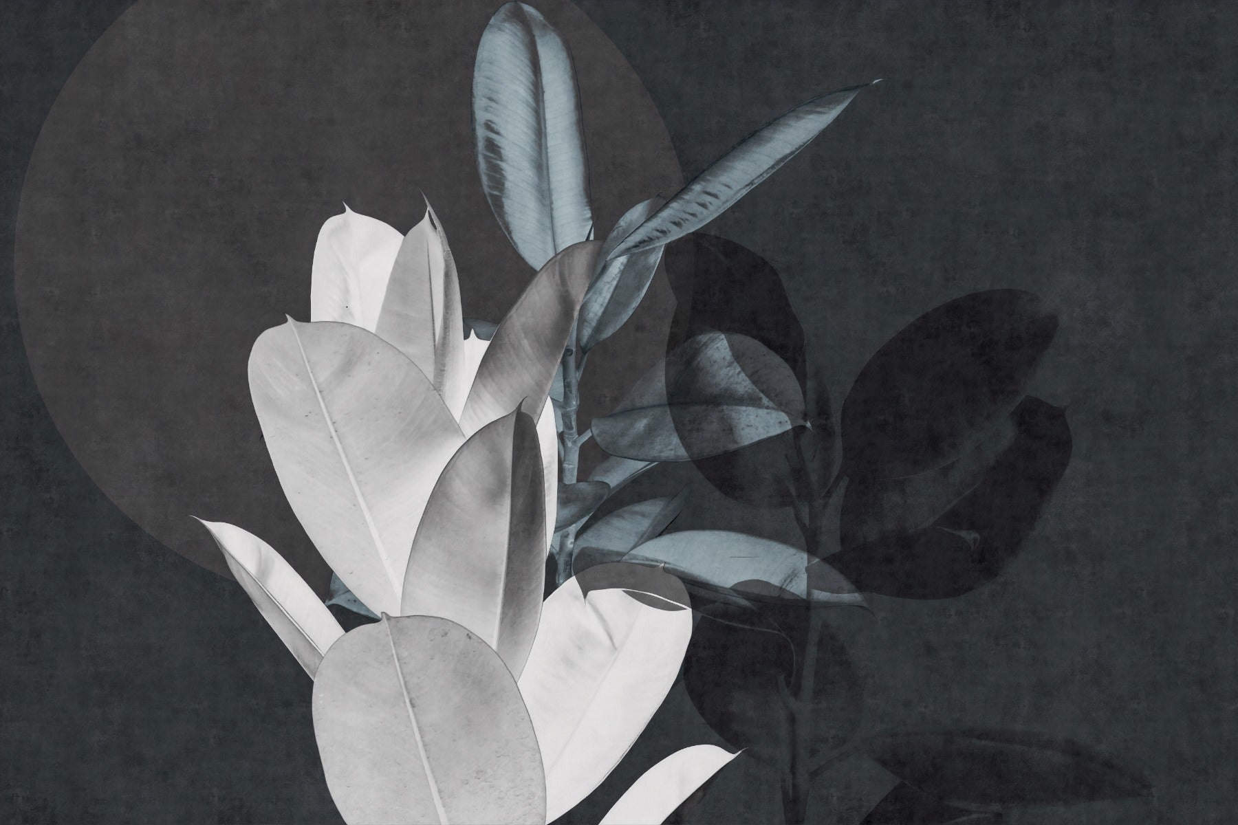 Vægmaleriets detaljerede tekstur tilføjer dybde og karakter til dine vægge og gør det til et blikfang i ethvert rum. Uanset om det kombineres med moderne møbler eller klassiske elementer, fremhæver dette tapetmaleri skønheden i dit interiør. Derudover skaber inkorporeringen af ​​rigtige planter sammen med vægmaleriet en levende kontrast, der forbedrer rummets overordnede udseende. Omfavn den tidløse appel af sort og grå - disse farver forsvinder aldrig fra stilen. Forvandl dine almindelige rum til ekstraordinære med skønheden og elegansen af ​​​​de teksturerede store blade-tapetmalerier.