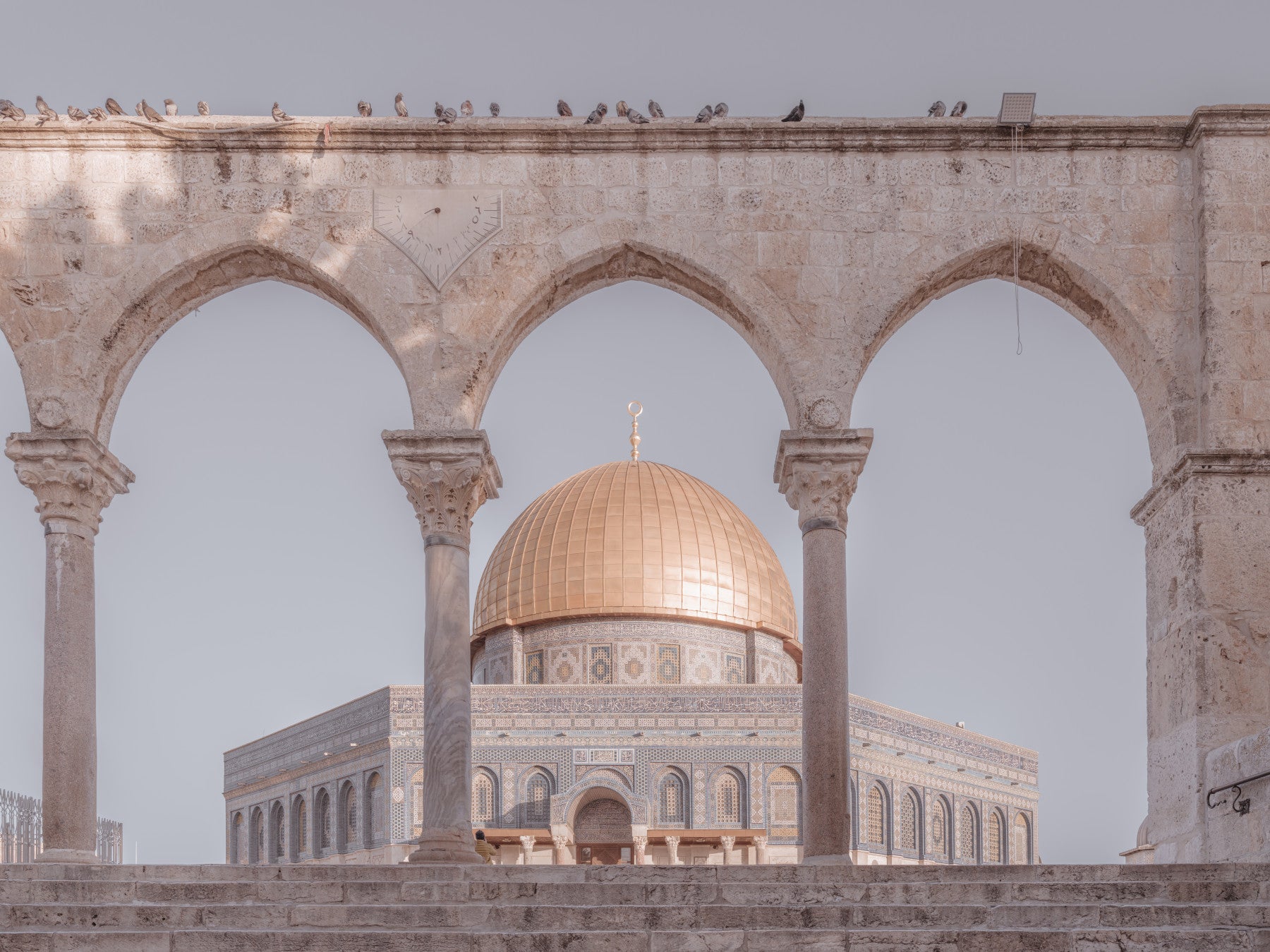 Bring en følelse af fred og historisk skønhed ind i dit rum med vores Al-Aqsa-moskeen vægmaleri. Dette smukke vægmaleri har den ikoniske Gyldne Kuppel indrammet af gamle stenbuer, hvilket skaber et sceneri af arkitektonisk storhed og ro. Det bløde, blide lys og de indviklede detaljer giver dit rum en rolig, kontemplativ atmosfære. Det er det perfekte tapet til vægge i en stue, et arbejdsværelse eller ethvert andet rum, hvor du søger et strejf af historisk og spirituel betydning.
