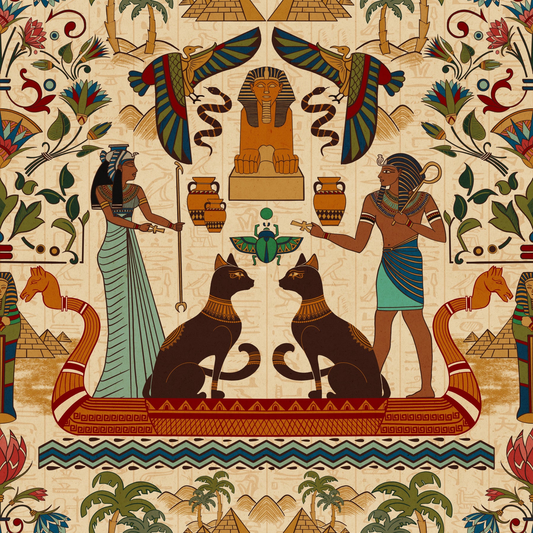 Bold Ancient Echoes Wall Mural enhancing a Bedroom with cultural warmth.