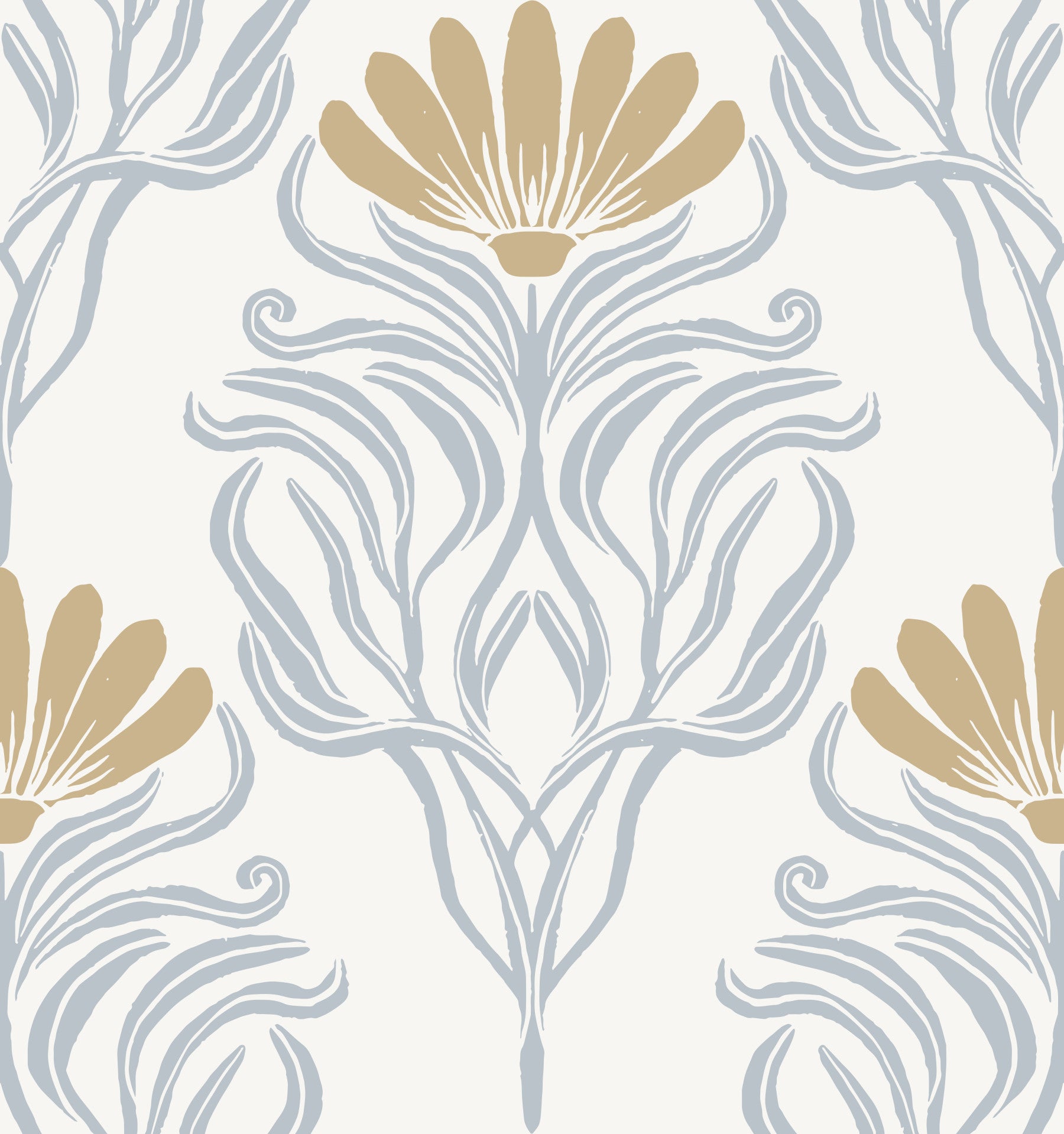 Omfavne tidløs elegance med dette "gamle motivmønster" tapet. Designet har et fængslende samspil af stiliserede blomsterelementer, der minder om gammel kunst. Bløde, dæmpede toner af støvede blå og beige skaber en fredfyldt og sofistikeret atmosfære. Det gentagne mønster af stiliserede blomster og flydende blade fremkalder en følelse af ro og klassisk skønhed, perfekt til at tilføje et strejf af historie og raffineret stil til ethvert rum. Dets subtile, men alligevel slående design fungerer smukt som et beroligende baggrund, der supplerer forskellige interiørstilarter fra moderne minimalisme til klassiske traditionelle omgivelser. Den håndlavede fornemmelse af designet tilføjer en unik charme og varme til den samlede æstetik, hvilket gør dette tapet til et fængslende valg for dem, der søger et fredeligt og sofistikeret miljø.