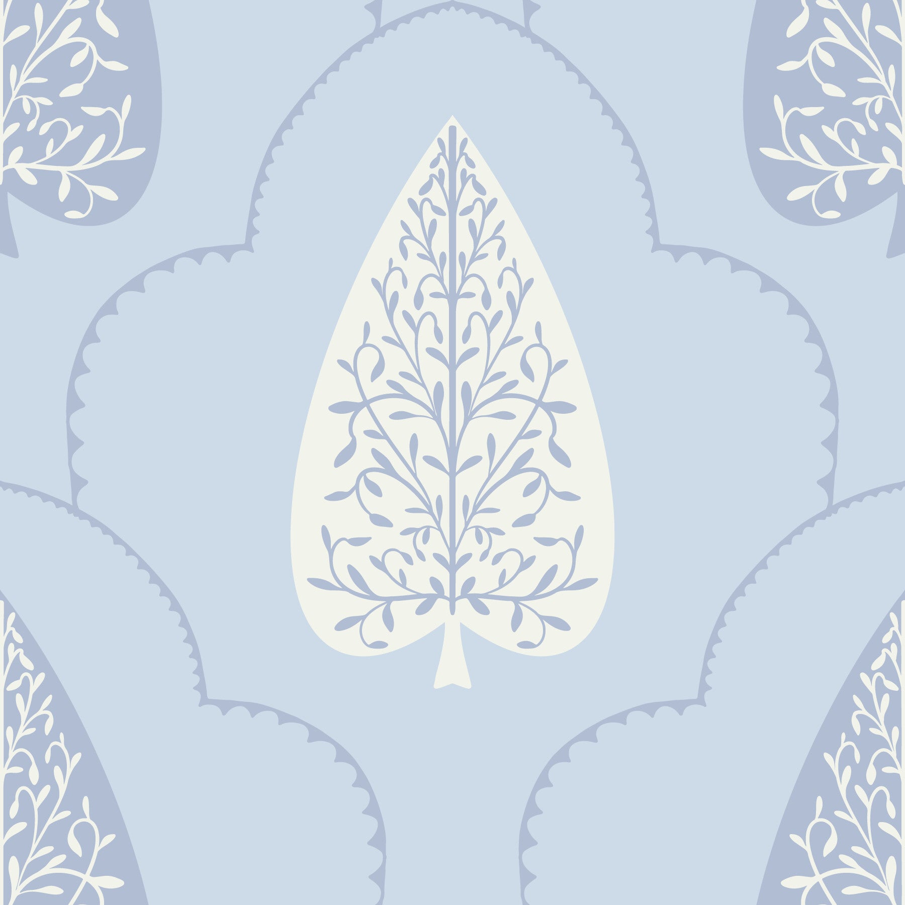 Timeless blue leaf print wallpaper, refined home interior detail, Arbor Branch Harmony.