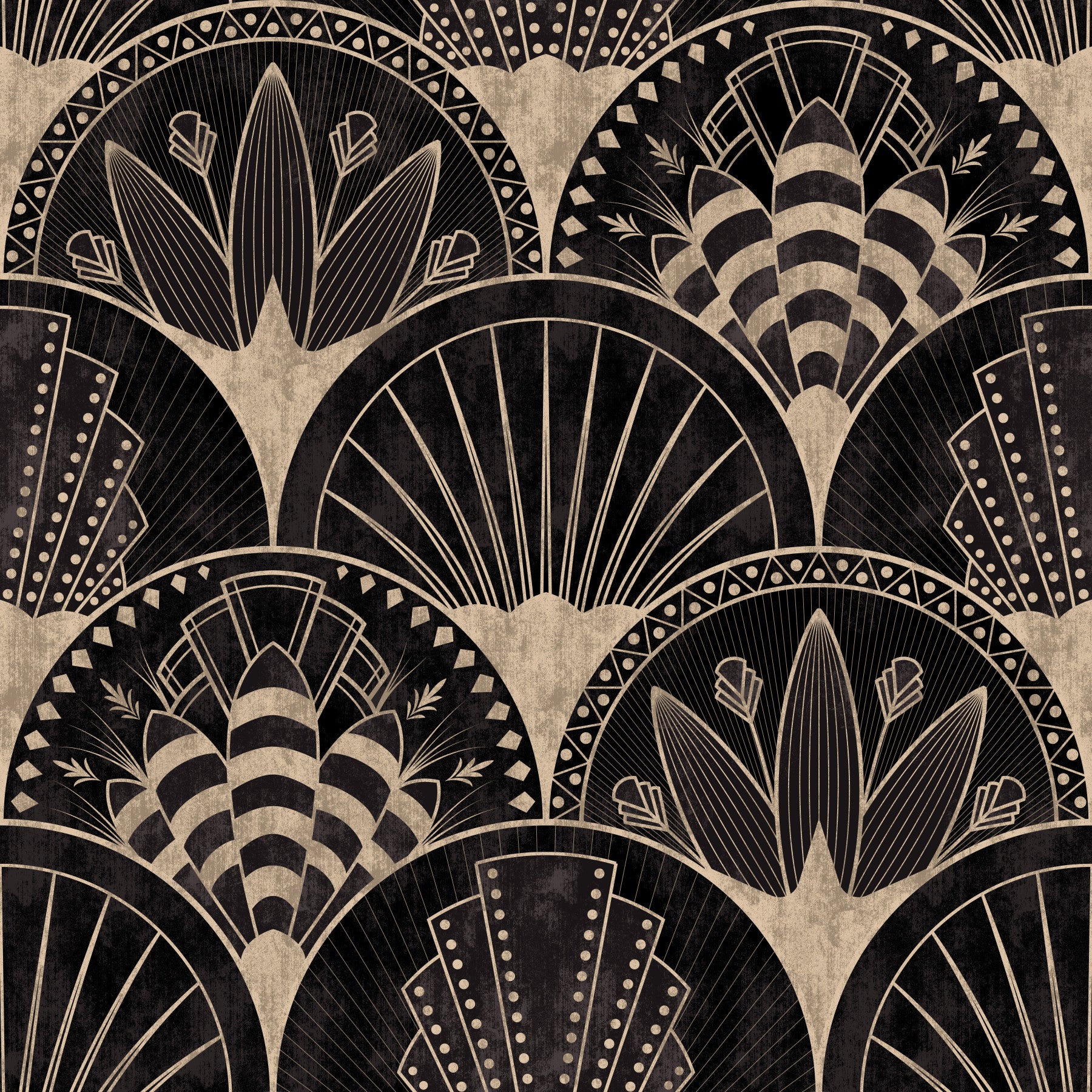 Dette tapet fanger den sofistikerede charme i Art Deco -æraen. Designet har et problemfrit mønster af geometriske former og stiliserede blomstermotiver i en rig palet af sort og beige. Den strukturerede baggrund tilføjer en følelse af dybde og vintage appel, mens de nøjagtige linjer og elegante kurver skaber en følelse af raffineret luksus. Perfekt til at tilføje et strejf af klassisk glamour til ethvert rum, dette tapet er et udsagnsstykke, der løfter stemningen i et rum. Dets tidløse design sikrer, at det forbliver stilfuldt i de kommende år, hvilket skaber et visuelt fantastisk fokuspunkt i dit hjem eller kontor.