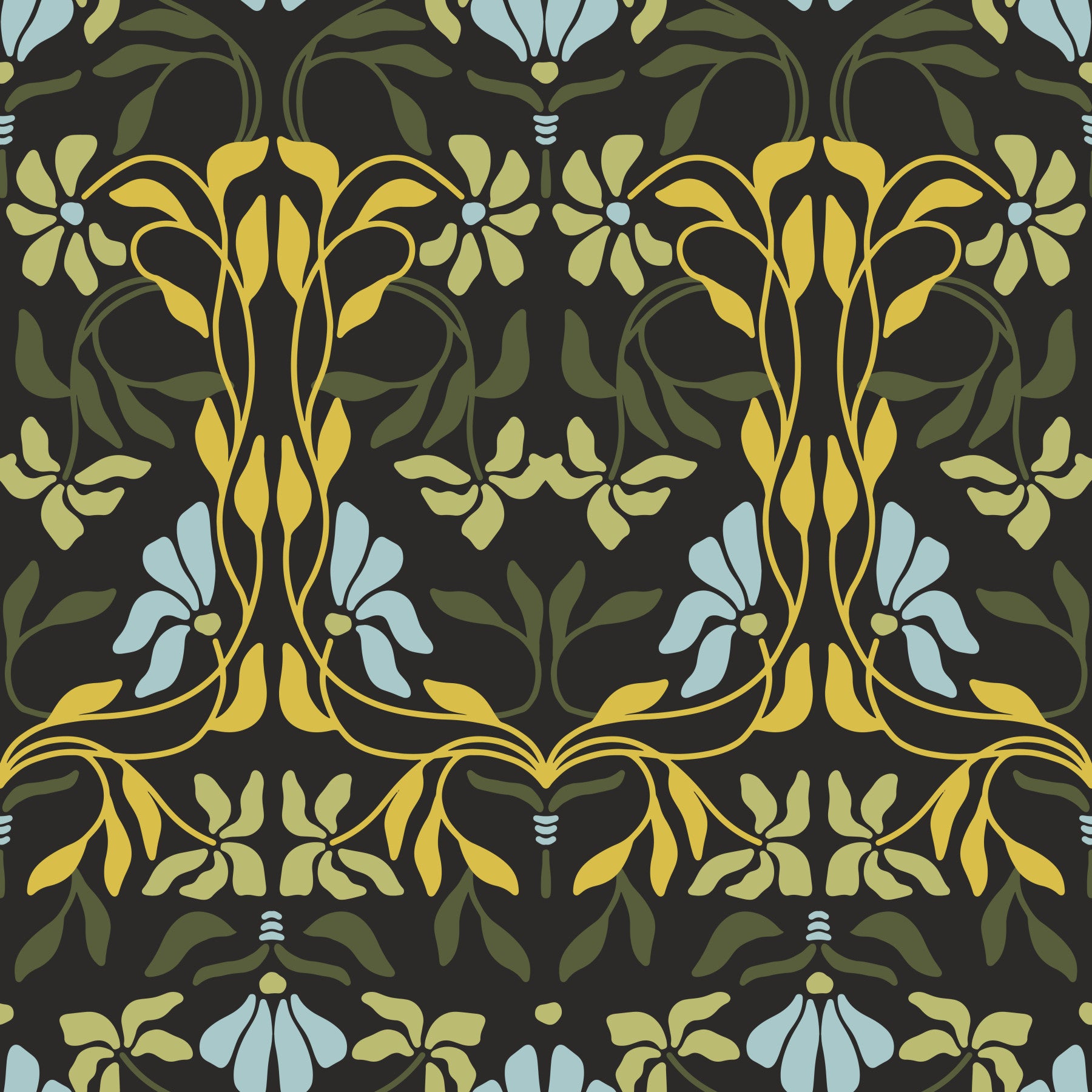 Art Nouveau wallpaper with blooming floral curves