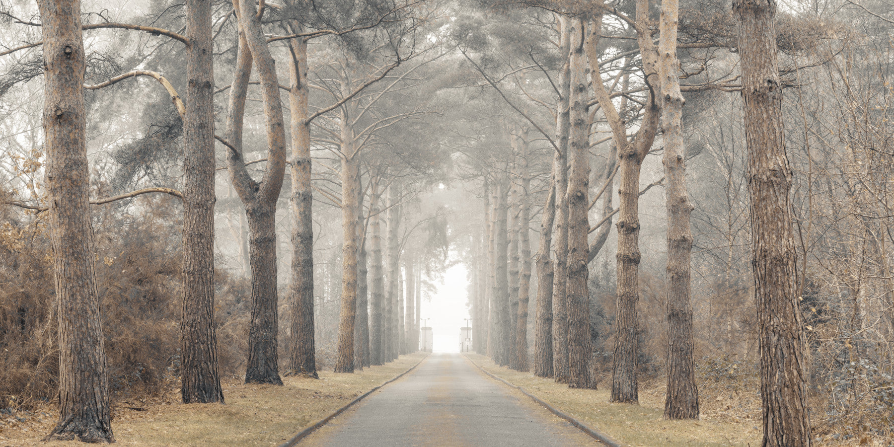 Designet, en gang med høje træer, der er skjult af en tung tåge, skaber et langt perspektiv, der er unikt som et tapet for vægge. De grå toner, dæmpet lys og brune nuancer, tilføj dimension til enhver væg i et soveværelse eller stue. Tapetet giver en følelse af dybde til de rum, det dekorerer og passer godt til både moderne og rustikt interiør. Dette tapet tilføjer et lag med kompleksitet til ethvert rums design.