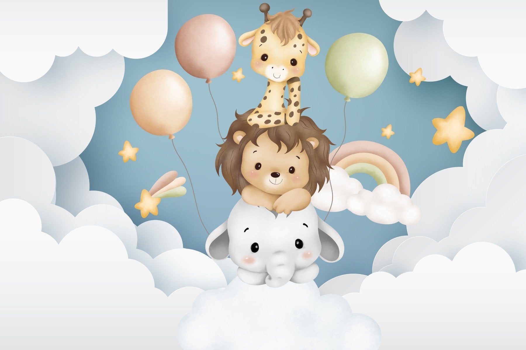 Baby animal balloon fiesta wallpaper mural for joyful decor