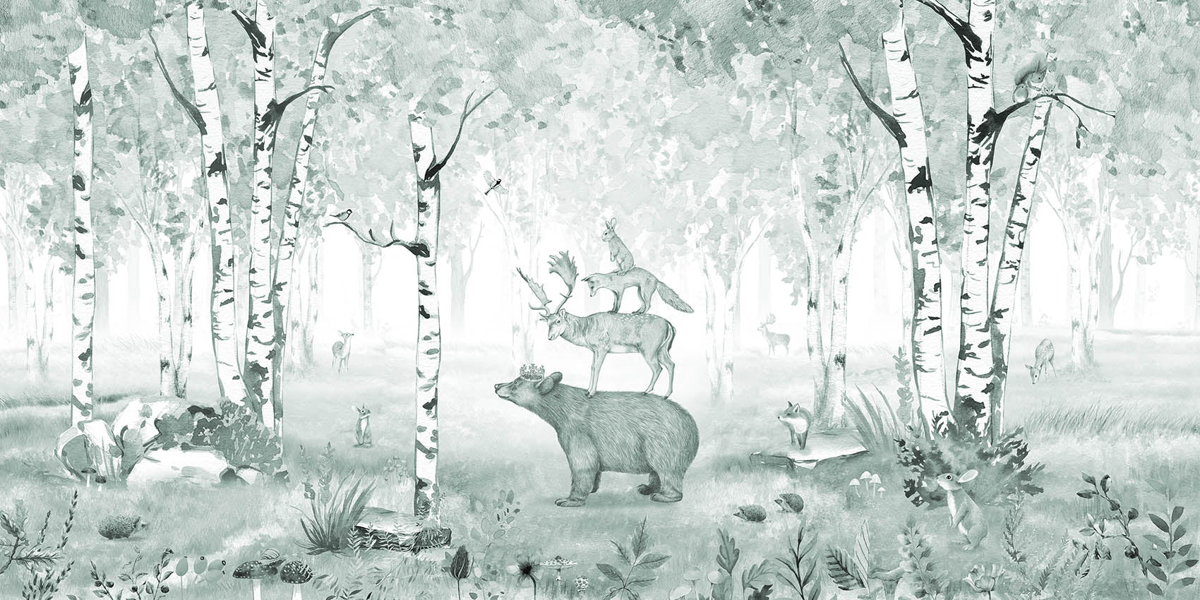 Woodland animals in Blue Bear King wallpaper mural design