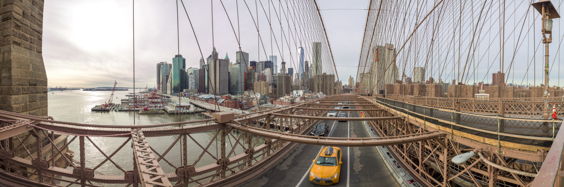 Brooklyn Bridge, New York. Medbring energien fra New York City hjem med denne skyline -udsigt. Det dynamiske design fanger de ruvende skyskrabere og travle byliv fra udsigtspunktet for en bybro. Dette tapet til vægge leverer en stilfuld, storbyerklæring til ethvert rum. Dens blanding af neutrale og dristige arkitektoniske linjer fungerer vidundere i stuer, kontorer eller endda by-tema soveværelser.