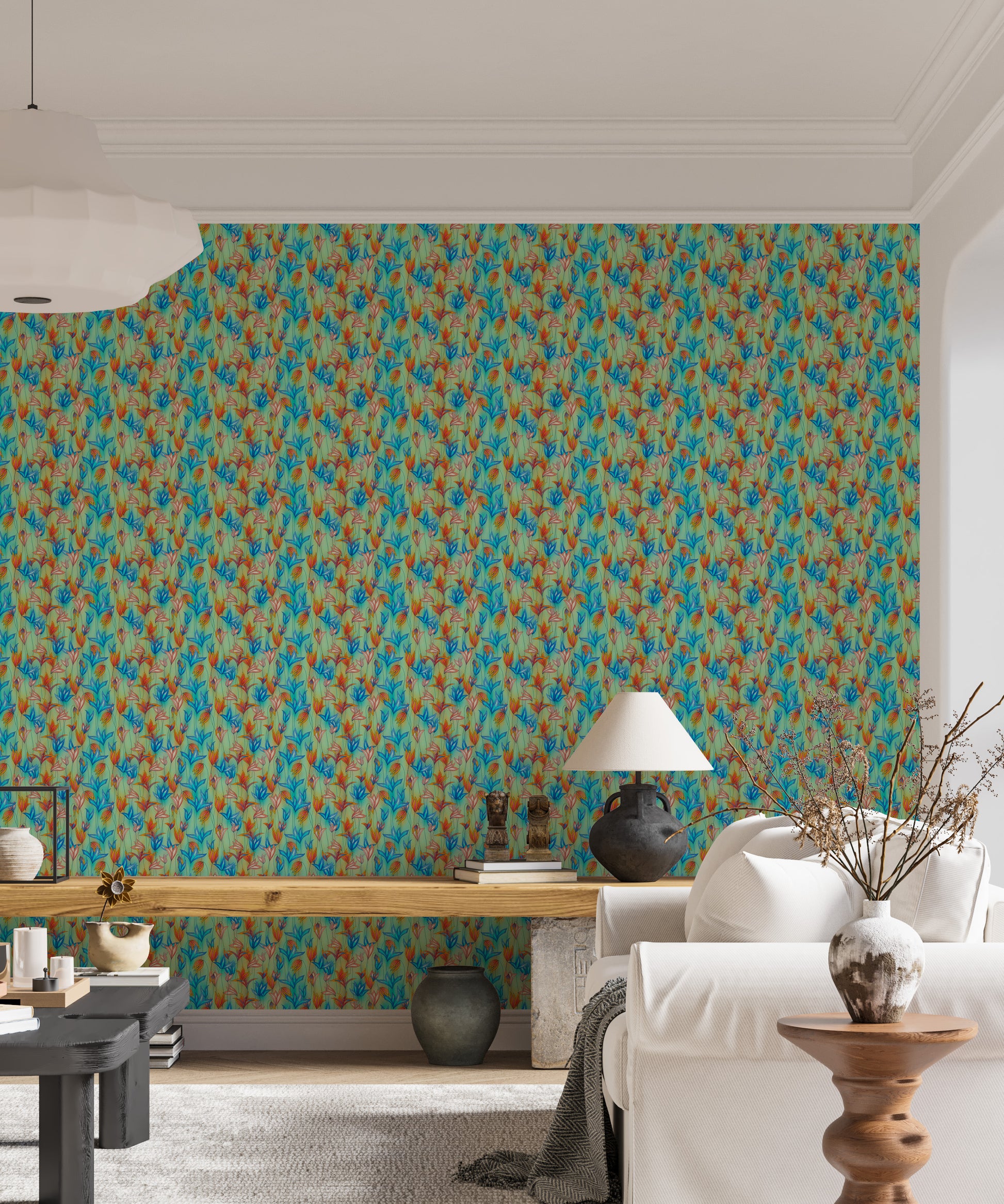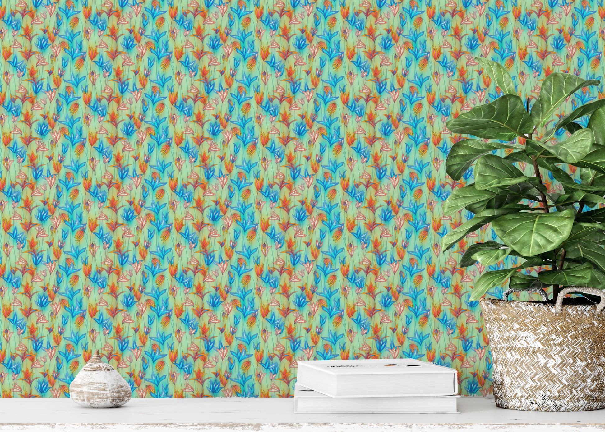 Bring naturens livlighed indenfor med vores Big Bold Wildflowers Green Wallpaper. Dette iøjnefaldende design har levende blå, orange og koralfarvede vilde blomster, der danser hen over en blød grøn baggrund og skaber en livlig, men beroligende botanisk æstetik. Perfekt til accentvægge, soveværelser eller kreative studier, puster dette tapet liv og energi ind i ethvert rum. Det indviklede blomstermotiv mønstre Fremkald en vild eng i fuldt flor, hvilket gør den ideel til både naturelskere og moderne interiører. Dette selvklæbende tapet er nemt at påføre og fjerne og tilføjer øjeblikkelig charme uden binding. Løft din indretning med et dristigt blomstertapet, der forvandler vægge til levende kunst.