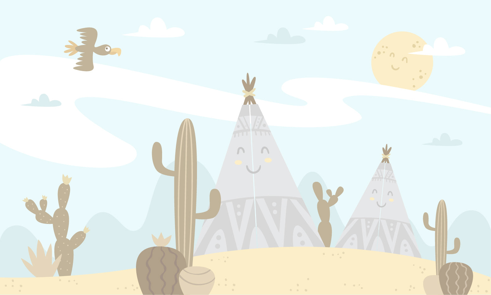 Happy tipi and sky wallpaper mural for kids bedrooms