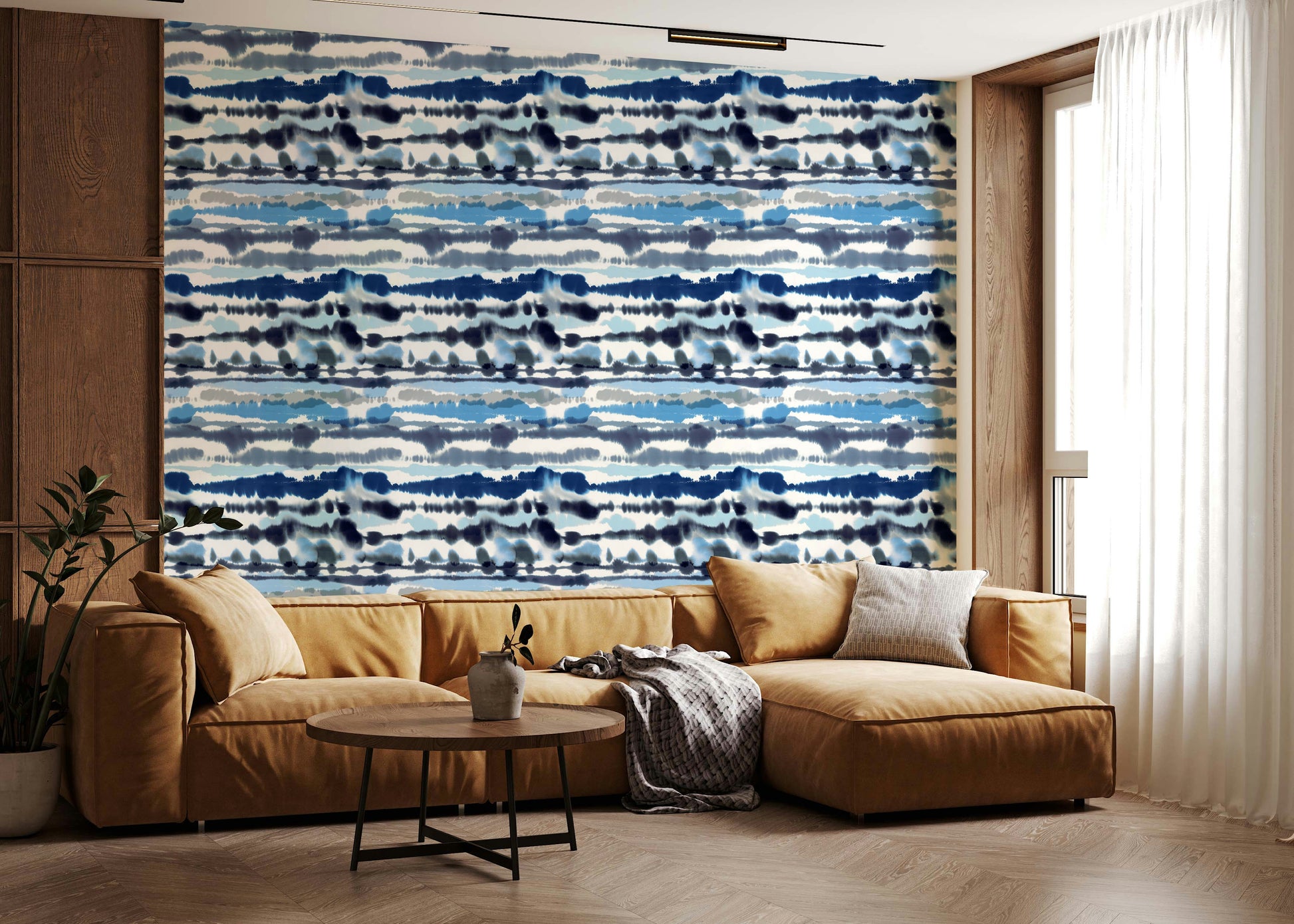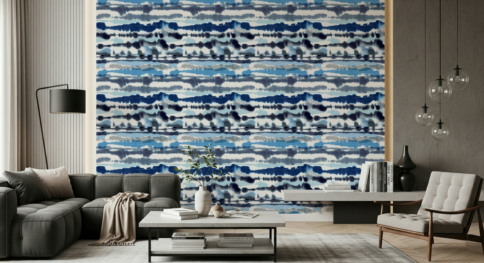 Transform your living spaces with this captivating wallpaper for walls. The fluid, horizontal strokes of blues and grays evoke a sense of calm and movement, reminiscent of gentle ocean tides. This design brings an airy, sophisticated touch to any room. The cool color palette makes it a superb choice for bedrooms, bathrooms, or any space where you want to create a serene, relaxing atmosphere. Elevate your home décor and immerse yourself in the tranquil beauty of this design. It will complement your interior spaces, lending a contemporary and artistic edge.