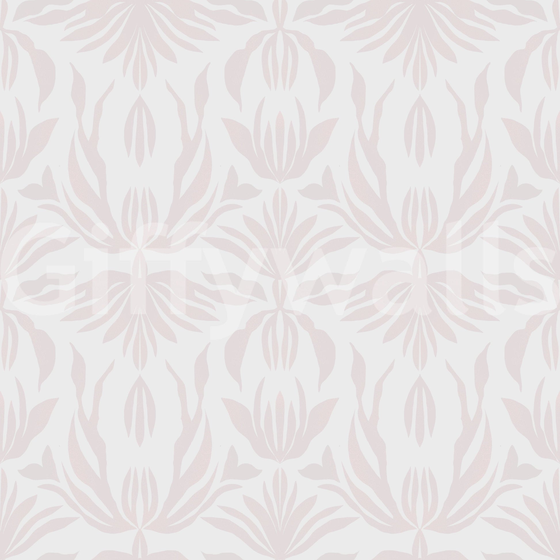 Bring subtle organic charm to your living space. This design showcases mirrored floral motifs in a light blush tone across a pale background. This wallpaper for walls offers a tranquil, understated luxury. Consider this design in bedrooms, living areas, or even a home office. The gentle colors and balanced pattern serve as a sophisticated backdrop. Its calming presence allows the design to complement a variety of interior aesthetics effortlessly.