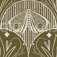 Embrace the serene allure of 'Boho Art Nouveau Scallop Butterfly Floral in Olive Drab,' a wallpaper design that effortlessly marries bohemian freedom with the elegance of Art Nouveau. This sophisticated piece features a captivating moth motif, poised against a backdrop of olive drab, a color that exudes tranquility and earthiness. Delicate floral accents and stylized scalloped shapes interweave with geometric lines, creating a harmonious balance between nature-inspired elements and structured design. The soft, neutral tones of the butterfly and botanical details complement the deep olive, resulting in a visually soothing and versatile aesthetic. This wallpaper is perfect for adding a touch of refined whimsy to any space, whether it's a living room, bedroom, or study. Let its unique blend of styles transform your walls into a canvas of understated beauty and captivating charm.