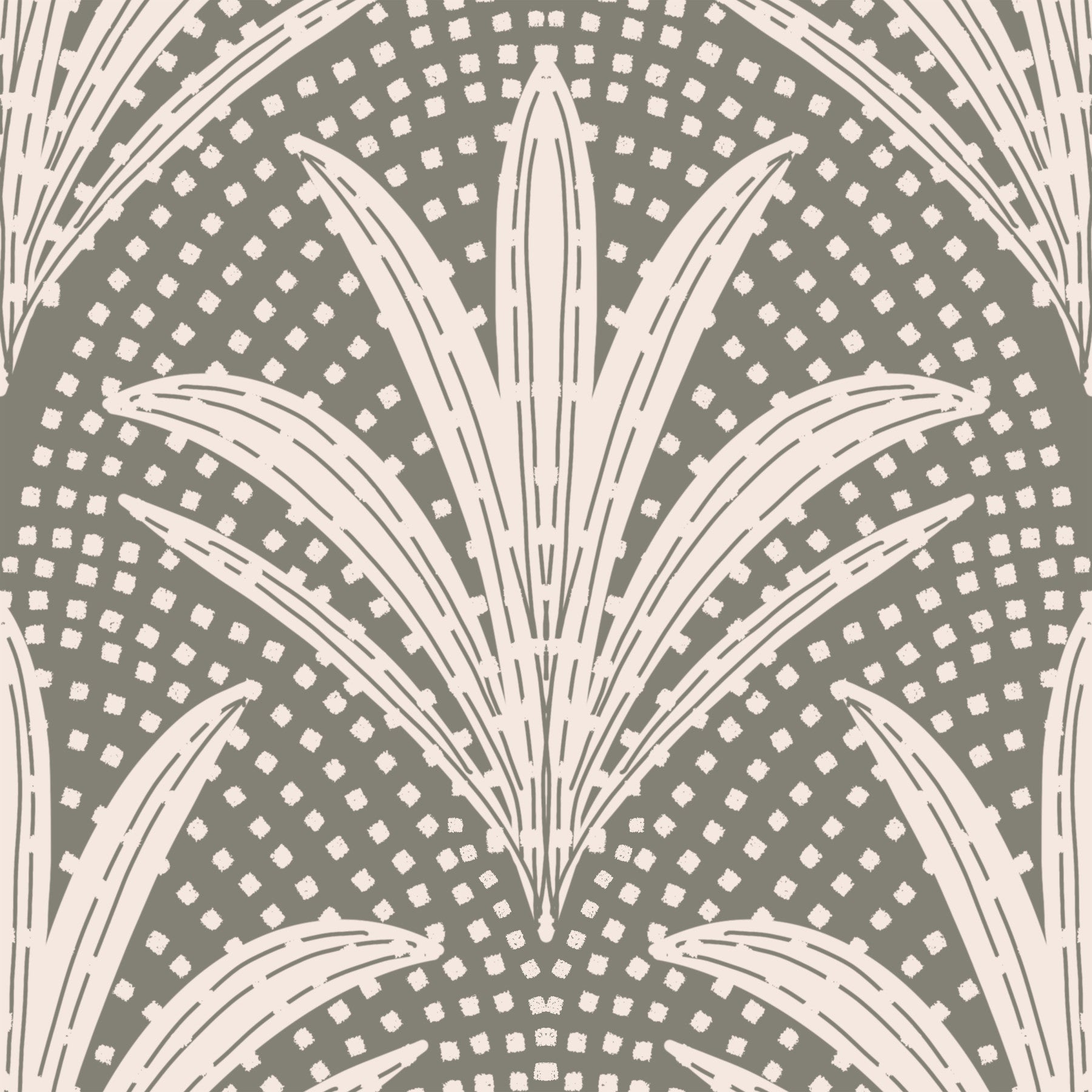 Omfavne rolig raffinement med denne boho rustik palme udstråling dæmpet grå tapet. Designet har stiliserede palmefronds i en blød, off-white farvetone, der stråler udad mod et beroligende dæmpet grå baggrund. Et subtilt struktureret prikmønster tilføjer dybde og et strejf af rustik charme, der forbedrer den samlede bohemske fornemmelse. Dette tapet blander perfekt naturlige elementer med en moderne minimalistisk æstetik, hvilket skaber en rolig og stilfuld atmosfære for ethvert rum. Den dæmpede farvepalet fremmer afslapning og er ideel til soveværelser, stuer eller hjemmekontorer, der søger en fredelig og sofistikeret atmosfære.