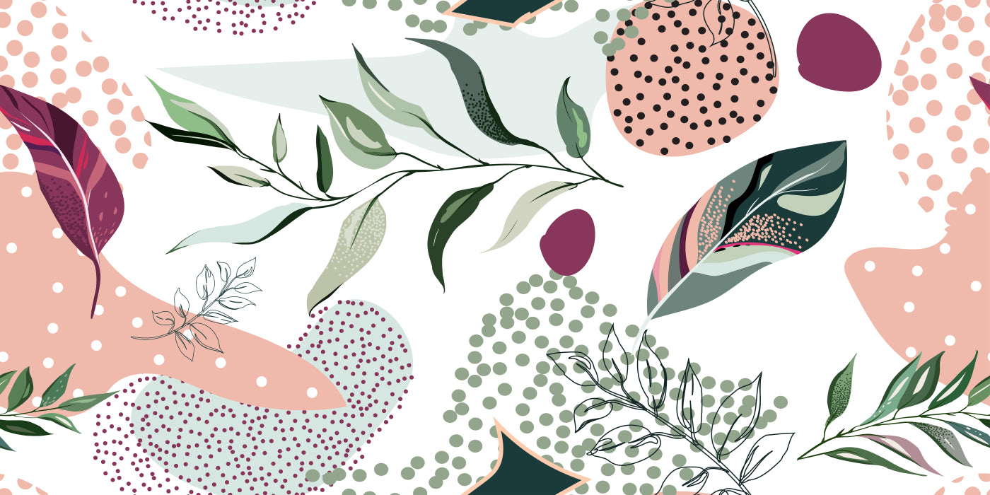 Artistic botanical pattern wallpaper featuring abstract leaves.