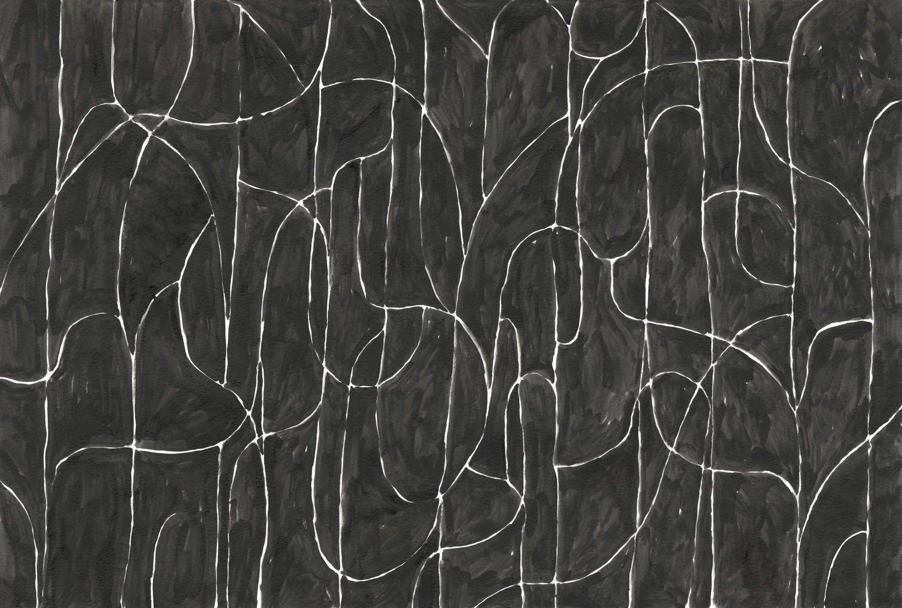 Coastal boulder beach mural with black tones