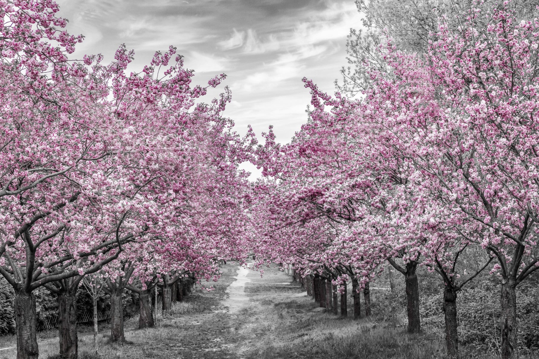 Cherry blossom alley in soft tones for wall décor