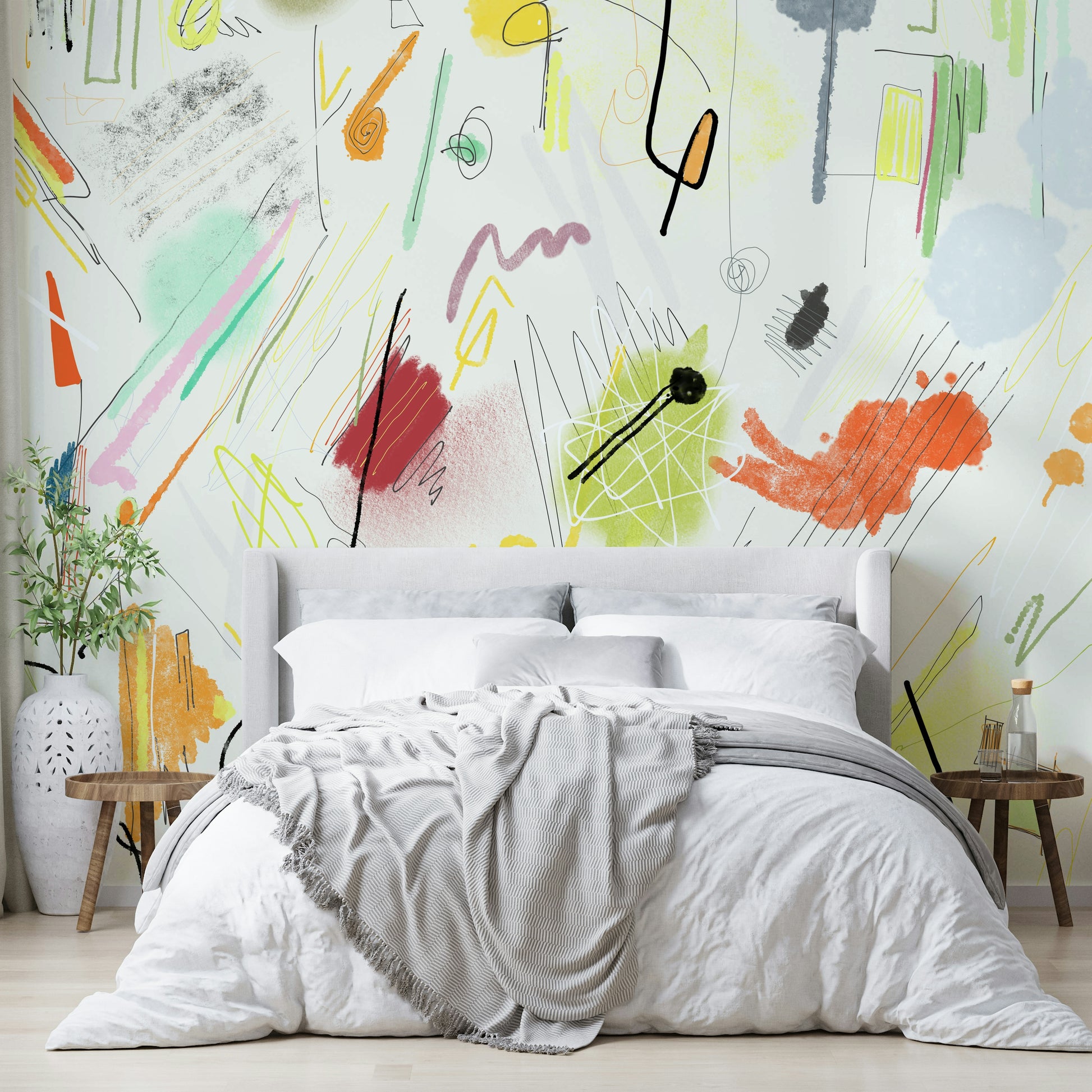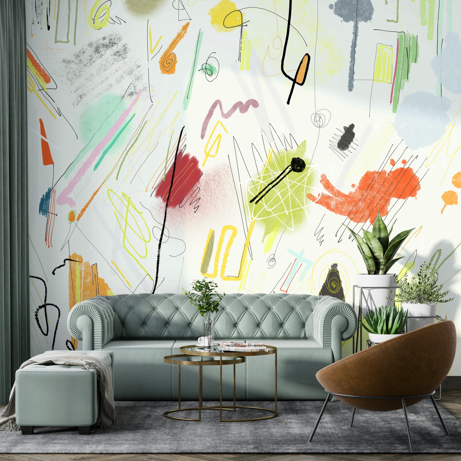 Dyk ned i det livlige kaos fra Cianfrusaglia 04, et fængslende abstrakt tapet. Dette design eksploderer med en legende kollision af håndtegnede linjer, strukturerede børstestræk og dristige farveblokke. Bløde pasteller blandes med fyrige appelsiner og røde, hvilket skaber en dynamisk og energisk humør. Det tilsyneladende tilfældige arrangement af former og mærker fremkalder en følelse af glad spontanitet, perfekt til at tilføje et unikt og kunstnerisk touch til dit digitale rum. Lægningen af ​​elementer, fra delikate skribler til betydelige farvevask, bidrager til en visuelt rig og engagerende oplevelse. Lad den energiske ånd af 'Cianfrusaglia 04' styrke din skærm.