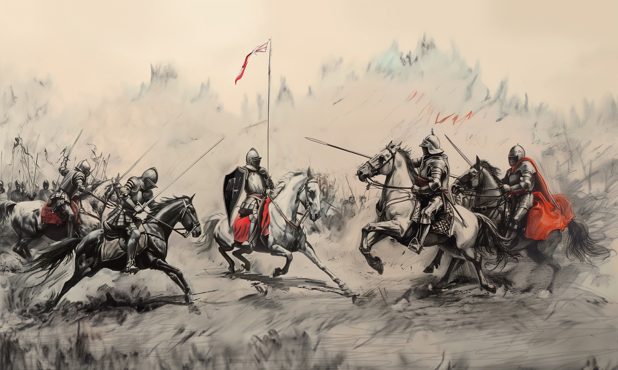Knightly battle scene medieval wallpaper design