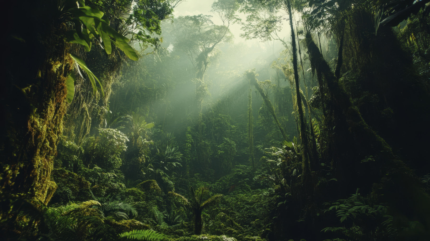 Immerse yourself in the ethereal beauty of 'Cloud Forest.' This wallpaper captures the enchanting atmosphere of a tropical highland rainforest, where mist-shrouded trees reach towards the sky, filtering sunlight into diffuse rays. Lush vegetation cascades in layers of vibrant green, from the moss-covered forest floor to the canopy above. Ferns, orchids, and bromeliads thrive in this humid haven, creating a symphony of textures and hues. The image evokes a sense of tranquility and mystery, inviting you to escape the ordinary and lose yourself in the untamed wilderness. Add a touch of natural wonder to your digital space with this breathtaking depiction of a world veiled in mist and teeming with life.